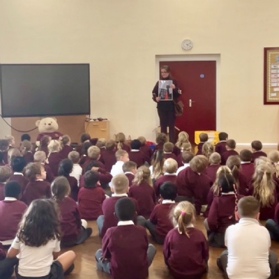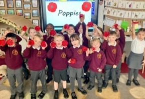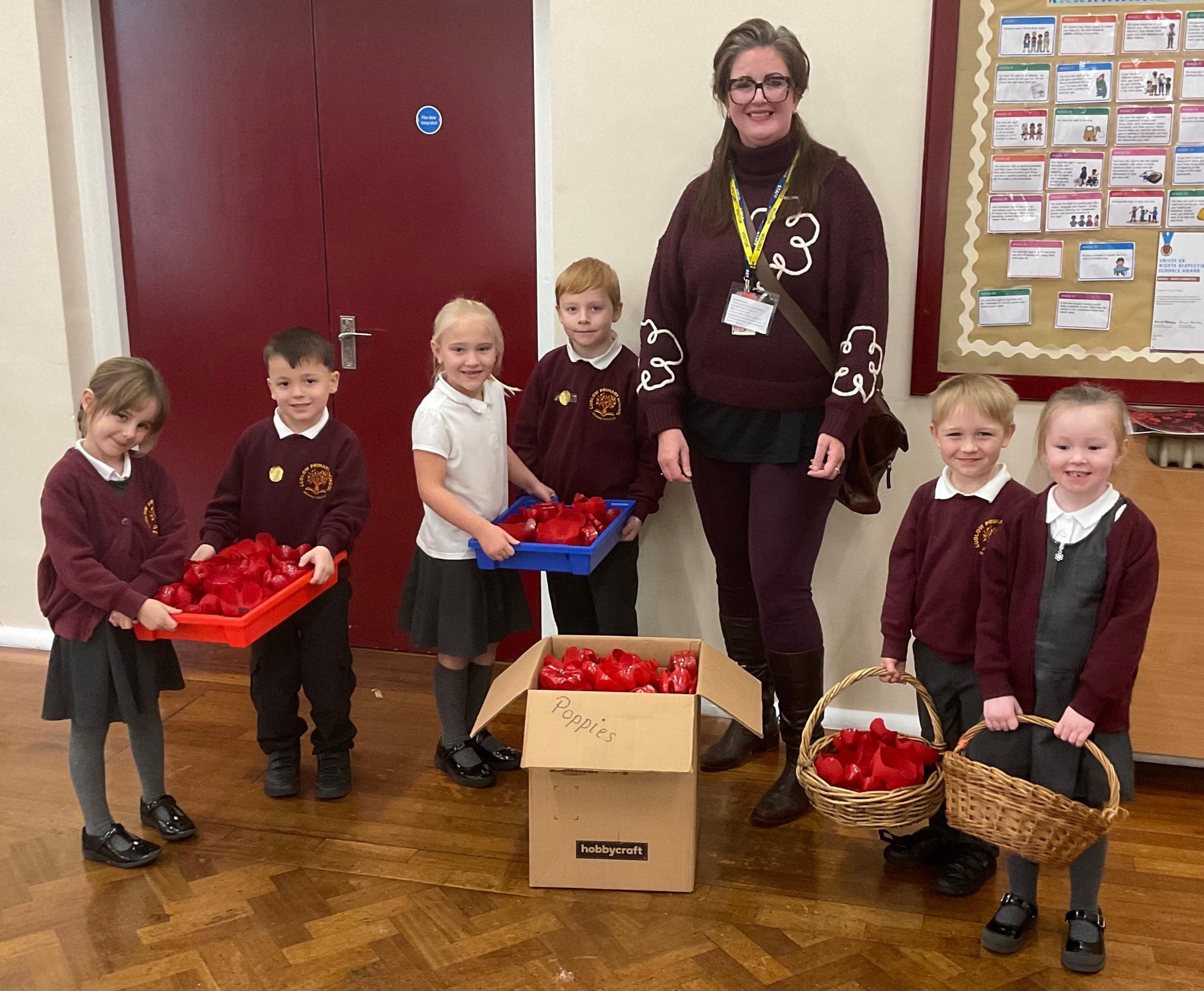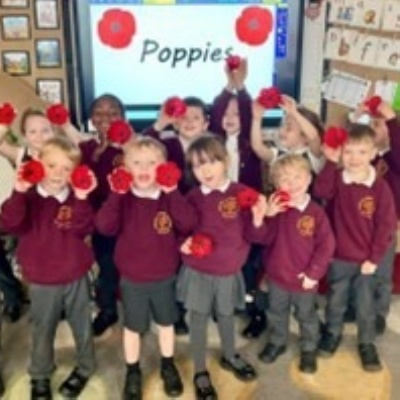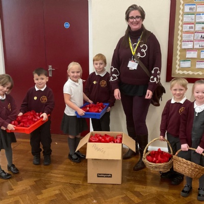 Children at Ludlow Primary School made poppies for the remembrance project run by Ludlow Town Council. Charlie from Ludlow Council came to visit KS1 to talk to them the plan for the poppies. The children then handed over their poppies. The poppies made by the children contributed to the waterfall display at the war memorial in town.