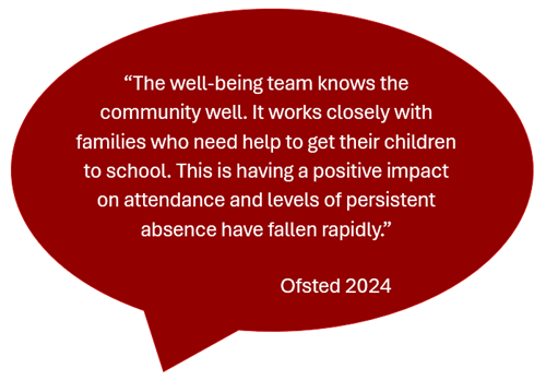 Wellbeing Co-ordinator with responsibility for: Safeguarding (DDSL) Well-being Individual/group Support Attendance |
