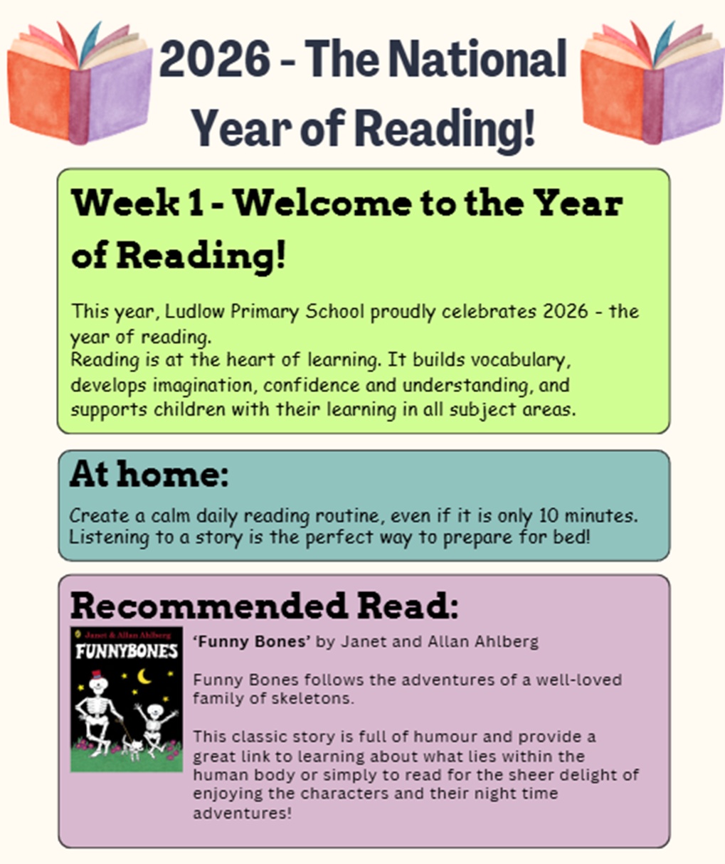 Ludlow Primary School understands the importance of reading in the process of developing pupils into independent learners. Reading is central to our ability to understand, interpret and communicate with one another: pupils who read on a regular basis, in school and at home, have a higher chance of fulfilling their potential.